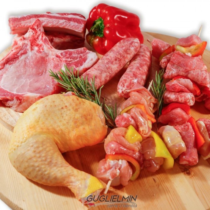 OFFERTA COMPOSTA DA:n. 5 Salsiccie di maialen. 8 Costine di maiale corten. 4 Braciole di maialen. 4 Spiedini misti di: pollo, maiale, salamella maialen. 3 Coscette di pollo